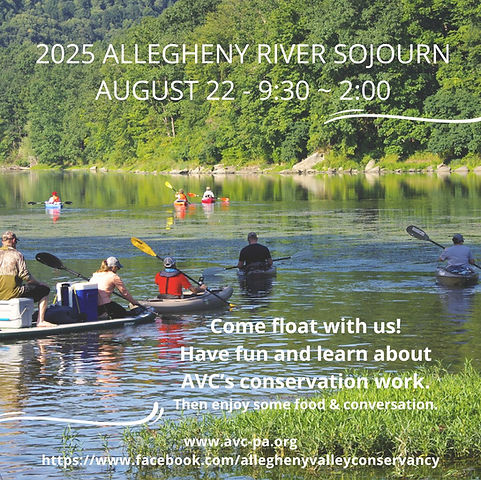 The board of the Allegheny Valley Conservancy is sorry to announce the cancellation of the 2025 Allegheny River Sojourn. We hope for a successful event in 2026. Thank you for your support.